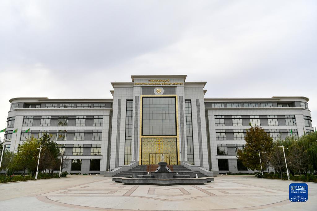这是11月26日在土库曼斯坦首都阿什哈巴德拍摄的国家统计委员会大楼。
