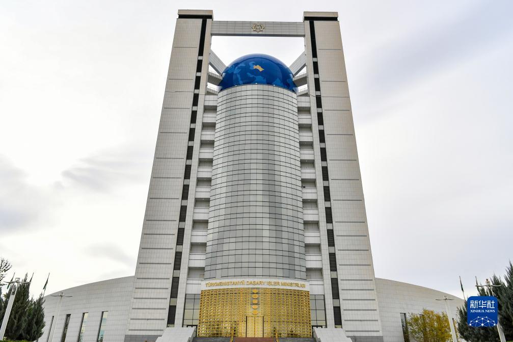 这是11月26日在土库曼斯坦首都阿什哈巴德拍摄的外交部大楼。