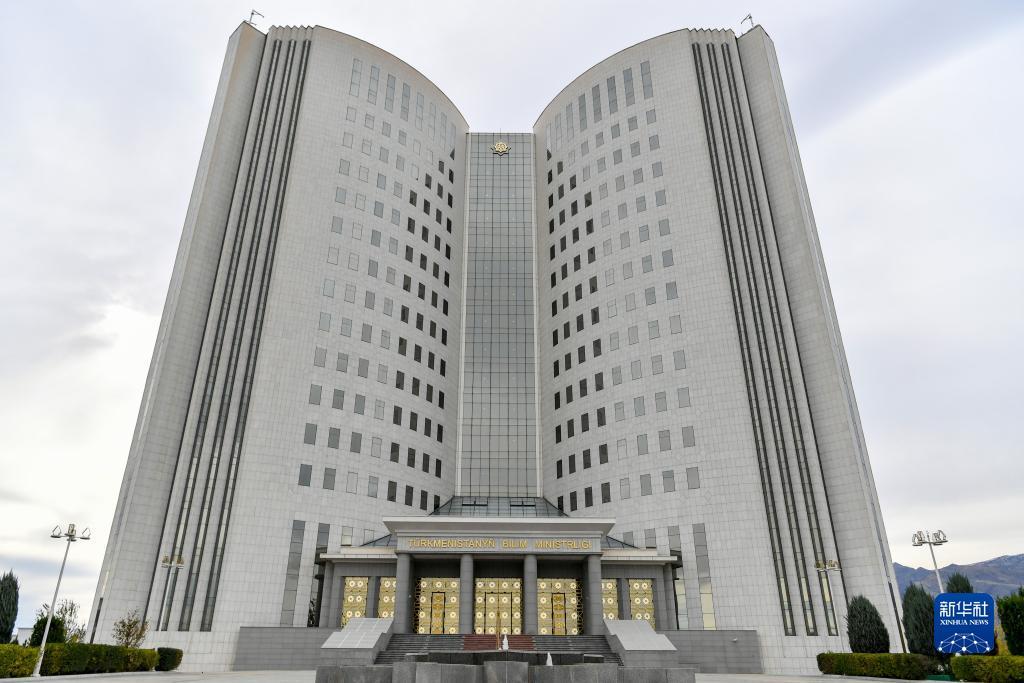 这是11月26日在土库曼斯坦首都阿什哈巴德拍摄的教育部大楼。