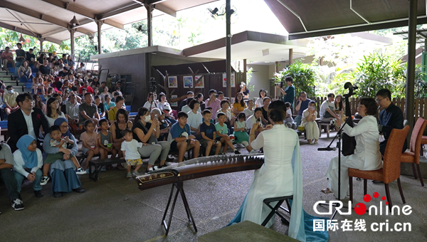 新中两国艺术家还在河川生态园的河言物语小剧场用琵琶、竹笛、古筝合奏了《春江花月夜》,演唱了《茉莉花》《康定情歌》和《友谊地久天长》等经典歌曲。活动现场摆放了很多新加坡中国文化中心与中国宋庆龄青少年科技文化交流中心举办的“你好大熊猫”中新青少年优秀绘画作品,中新两国的青少年共同用画笔表达对大熊猫的喜爱之情。