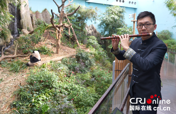 5号,一场别开生面的大熊猫主题音乐快闪活动在新加坡河川生态园举行。来自中国国家大剧院的艺术家和新加坡莱佛士音乐学院的师生们与即将回国的大熊猫“叻叻”在熊猫馆友好互动。莱佛士音乐学院导师陈庆伦用笛子为叻叻现场演奏了新加坡歌曲《家》。"刚才那首曲子是HOME,是新加坡家喻户晓的曲子《家》,叻叻是在新加坡出生的,我就想把这首曲子献给我们的叻叻,希望它回中国之后也时不时能想起新加坡。"