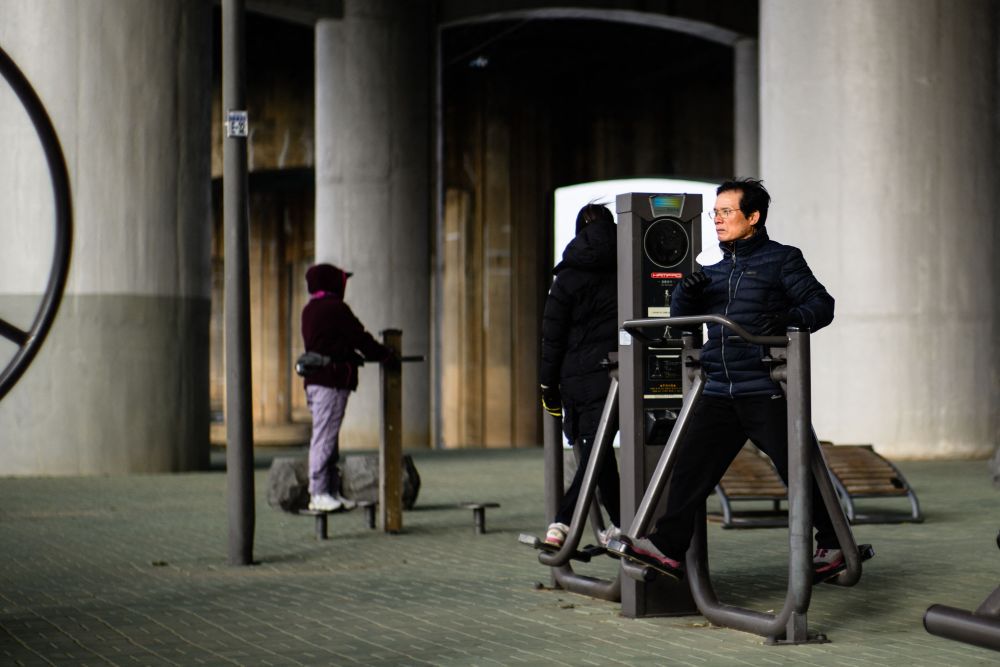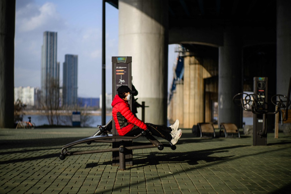 12月7日,在韩国首尔,市民在户外公共健身器械上锻炼身体。新华社/法新