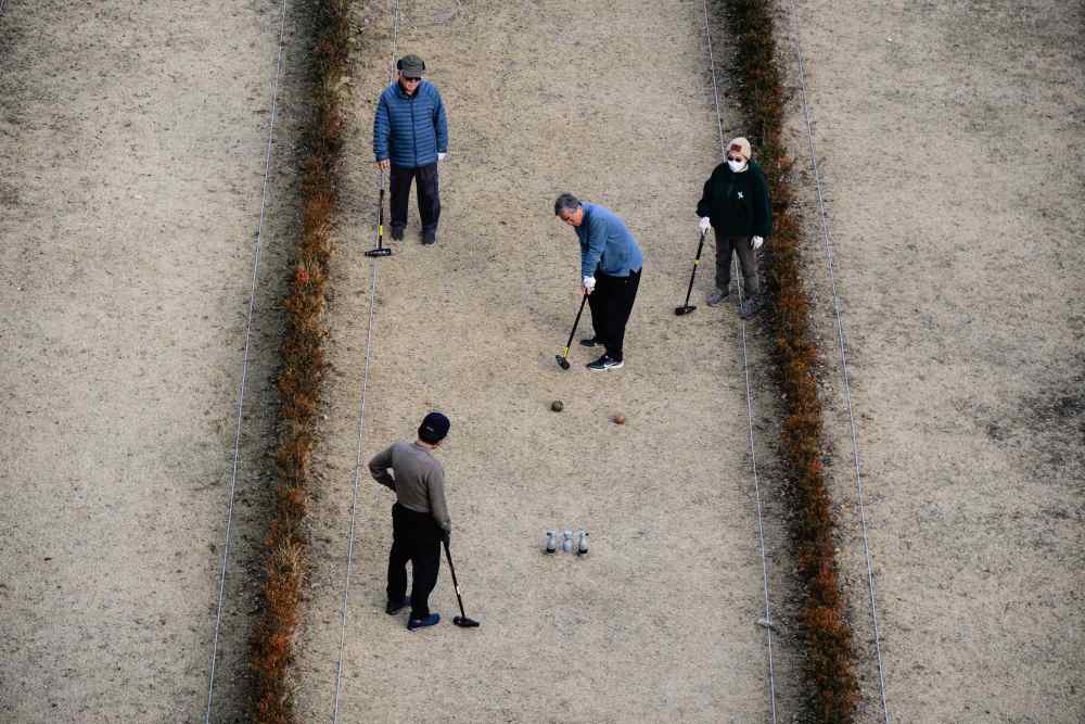 12月7日,在韩国首尔,市民在户外练习门球。新华社/法新