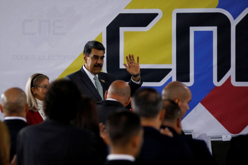 当地时间2023年12月4日,委内瑞拉加拉加斯,委内瑞拉总统马杜罗参加全国选举委员会活动。据报道,马杜罗表示,他有“一项计划”来恢复委内瑞拉对埃塞奎博地区领土的“历史性权利”。图/ICphoto