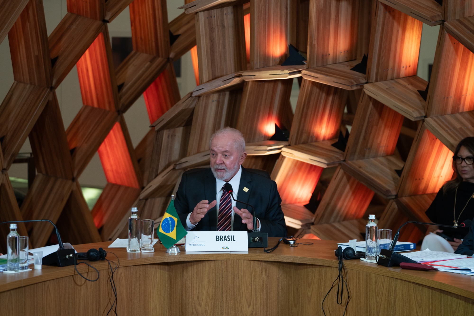 12月7日,在巴西里约热内卢,巴西总统卢拉在南方共同市场(南共市)第63次首脑会议上发表讲话。新华社记者王天聪摄