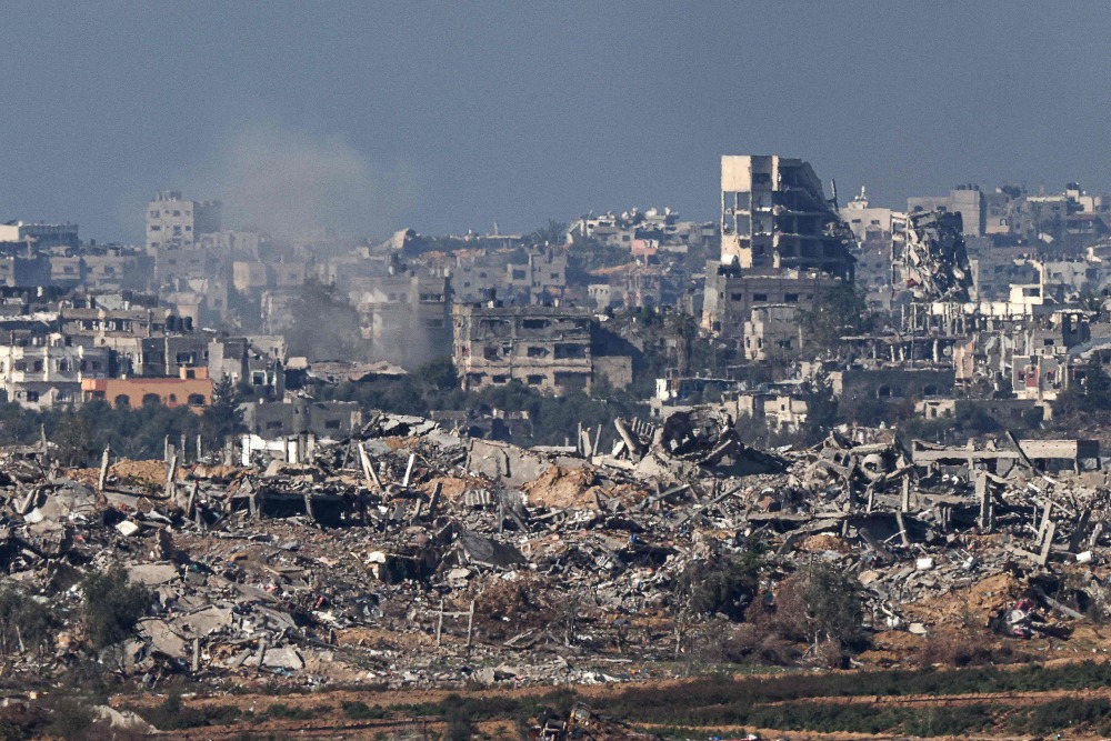 这张12月15日在以色列南部接近加沙地带边境地区拍摄的照片显示的是加沙北部地区的房屋废墟。新华社/法新