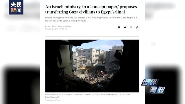 10月31日,美联社援引以色列新闻网站“本地电话”(SichaMekomit)的消息称,以色列情报部门曾在10月13日起草了一份10页的“概念性文件”,计划将加沙230万人口全部迁移至埃及的西奈半岛。据报道,10月29日,美国总统拜登在同埃及总统塞西通电话时曾谈到了这个问题。
