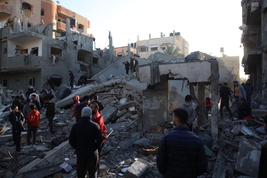 12月11日,在加沙地带中部的迈加齐难民营,人们查看以军袭击后的废墟。新华社发