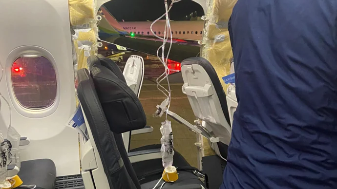 社交媒体上流传的乘客所拍照片显示,一扇舷窗及其周围的壁板“消失”,留下一个大洞,好似“敞门”飞机。