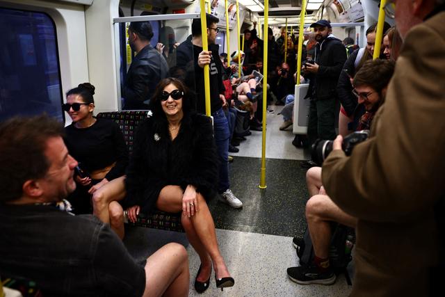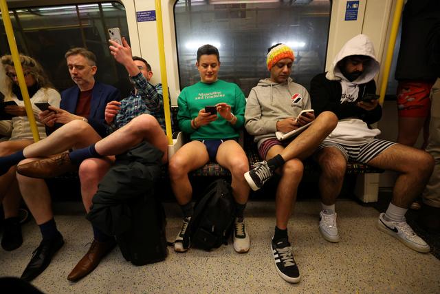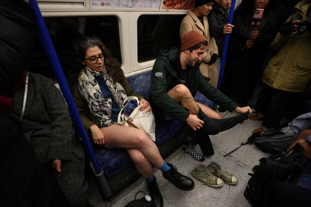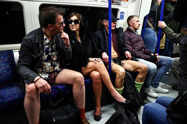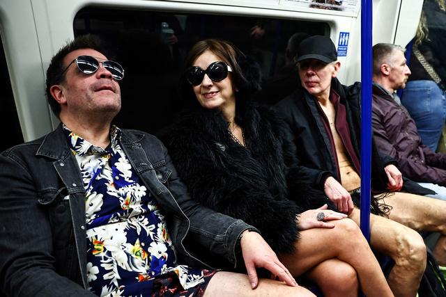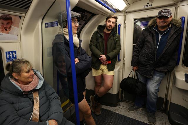 1月7日,人们在英国伦敦参加“不穿裤子搭地铁”活动。新华社/路透