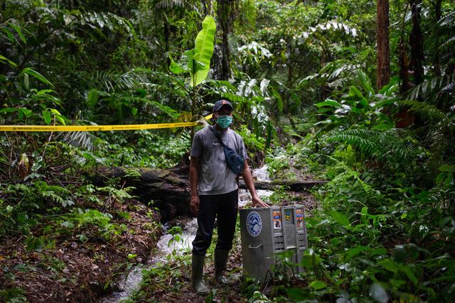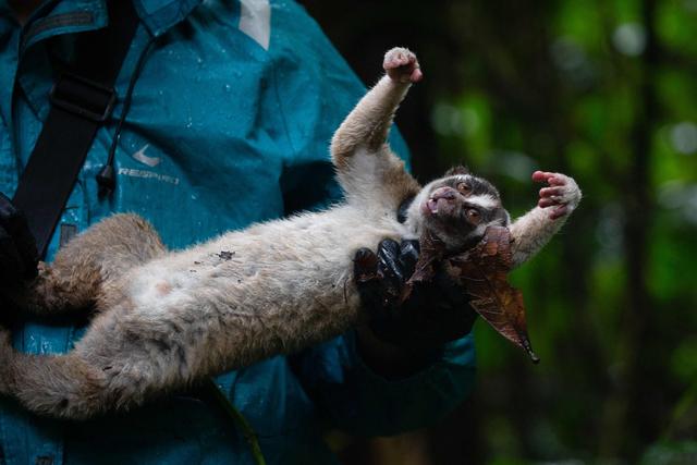 1月19日,在印度尼西亚西爪哇省苏加武眉,国际动物救援组织的工作人员准备放归一只爪哇懒猴。新华社/法新