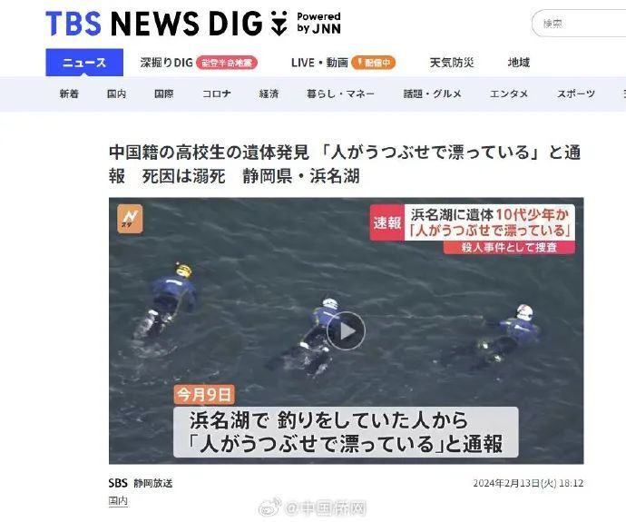 日本静冈县警方2月13日表示,9日在湖西市新居町滨名湖发现家住袋井市的中国籍学生遗体。