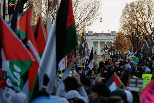 1月13日,在美国首都华盛顿,人们参加声援巴勒斯坦的集会游行活动。新华社发(亚伦摄) 卡米勒里认为,现在的情况像是“回到了2016年”——那一年,共和党人唐纳德·特朗普在密歇根州“意外”获胜,而当时该州民主党人感觉民主党全国领导层根本没有倾听“来自基层的诉求”。卡米勒里警告,如果拜登再不调整现行立场,在今年11月总统选举中输掉密歇根州也不意外。