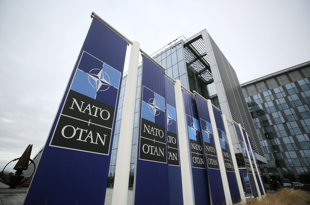 这是2月15日在比利时布鲁塞尔拍摄的北约总部一角。新华社记者赵丁喆摄