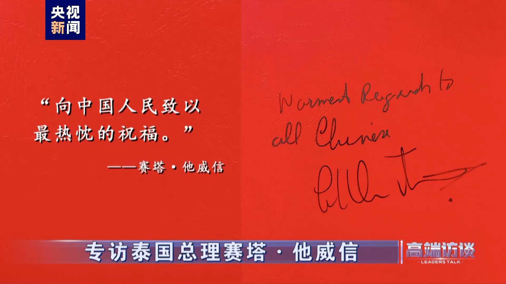 泰国总理赛塔·他威信在接受总台专访后题词: