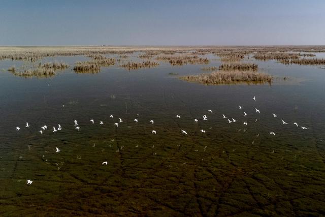 这是3月2日在美索不达米亚沼泽拍摄的飞鸟。新华社/法新