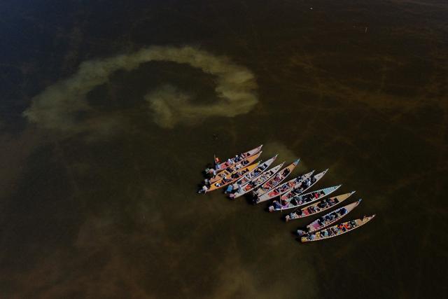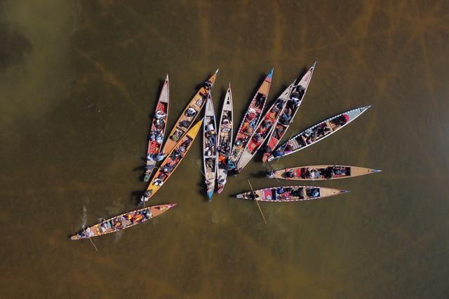 这是3月2日拍摄的美索不达米亚沼泽的船只(航拍照片)。新华社/法新