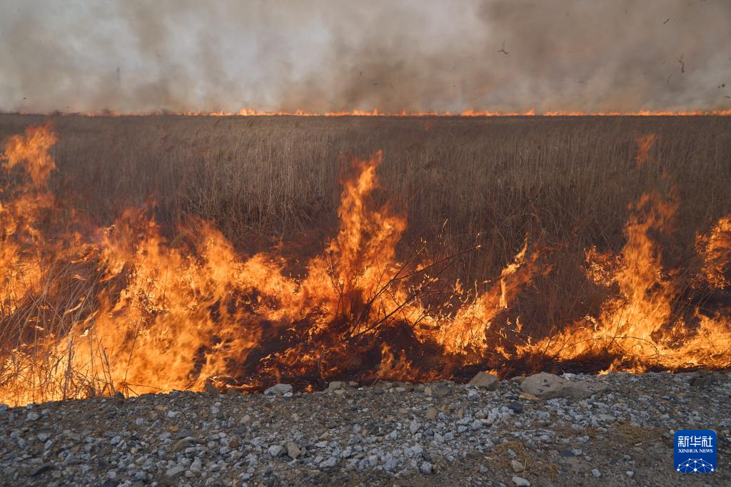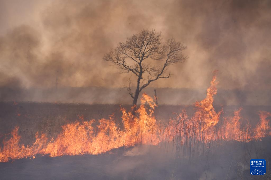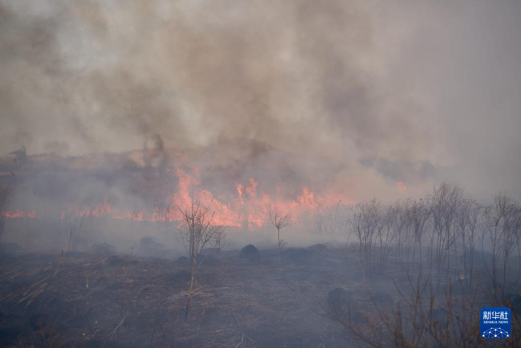 这是3月5日在俄罗斯滨海边疆区南部拍摄的野火现场。