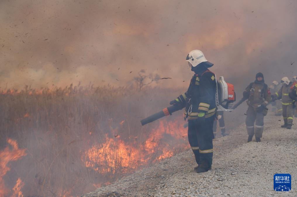 3月5日,消防员在俄罗斯滨海边疆区南部的野火现场灭火。