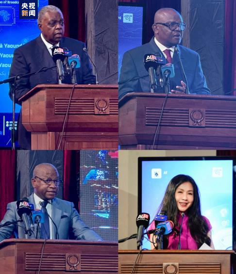 △喀麦隆新闻部长兼总统特别代表萨迪、非洲广播联盟首席执行官贾卡、联合国教科文组织代表埃里克、总台非洲总站站长宋嘉宁致辞