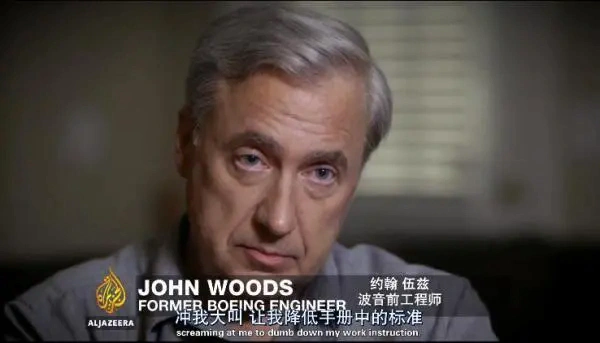 而在片中,航空工程师约翰·伍兹,曾负责为查尔斯顿工厂编制维修手册。据他透露,管理层曾要求他降低维修手册标准,减少修理所需时间。当他向波音人事部门提出投诉后,他很快便被波音解雇。被解雇后,他向美国监管机构联邦航空管理局(FAA)进行了举报,但举报的七条隐患中只有一条被FAA提交给了波音,要求整改。而波音在回复已经整改后,没有任何机构进行复查,甚至是被要求提交整改证据。