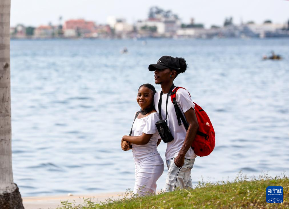 3月9日,在安哥拉首都罗安达,人们在海边散步。