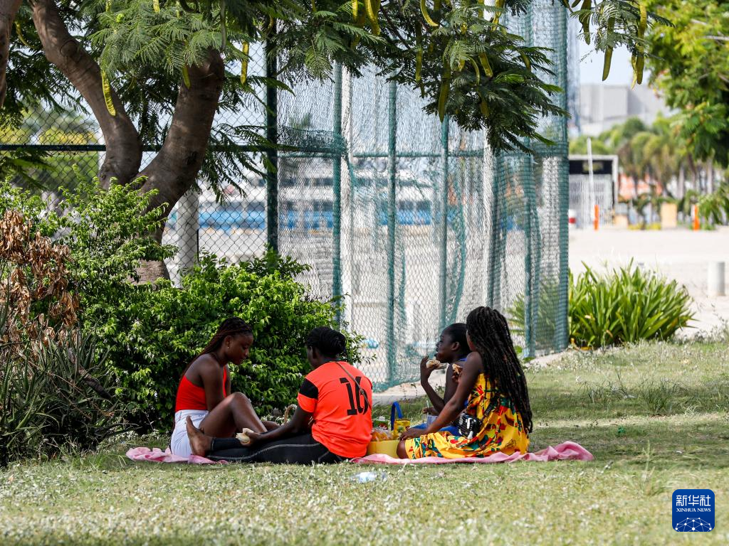 3月9日,在安哥拉首都罗安达,人们在草地上野餐。