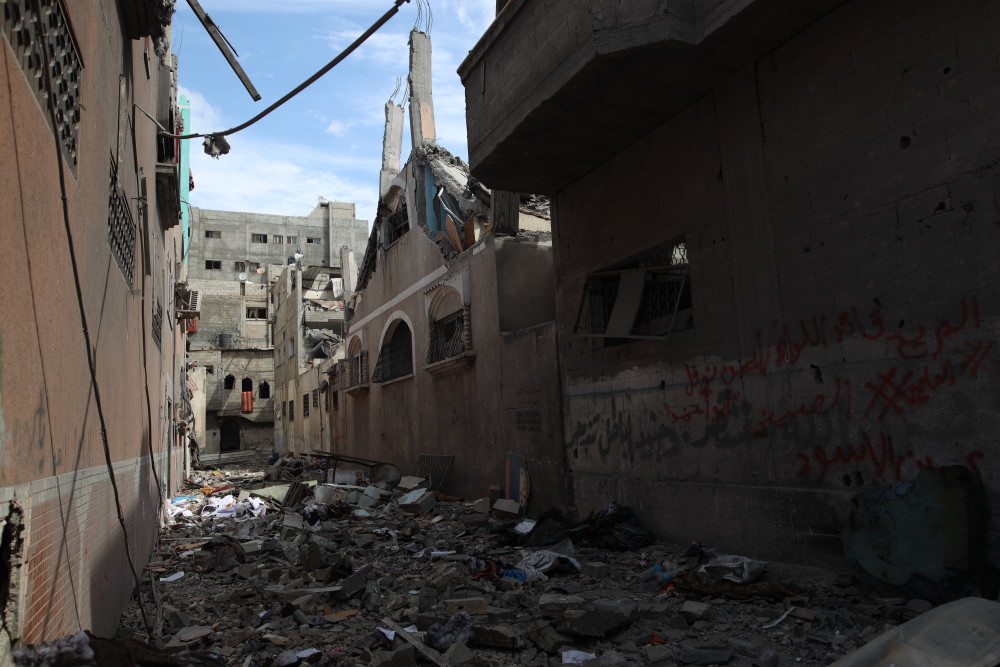 这是3月14日拍摄的加沙地带中部布赖杰难民营一处住宅遭空袭后的场景。新华社发