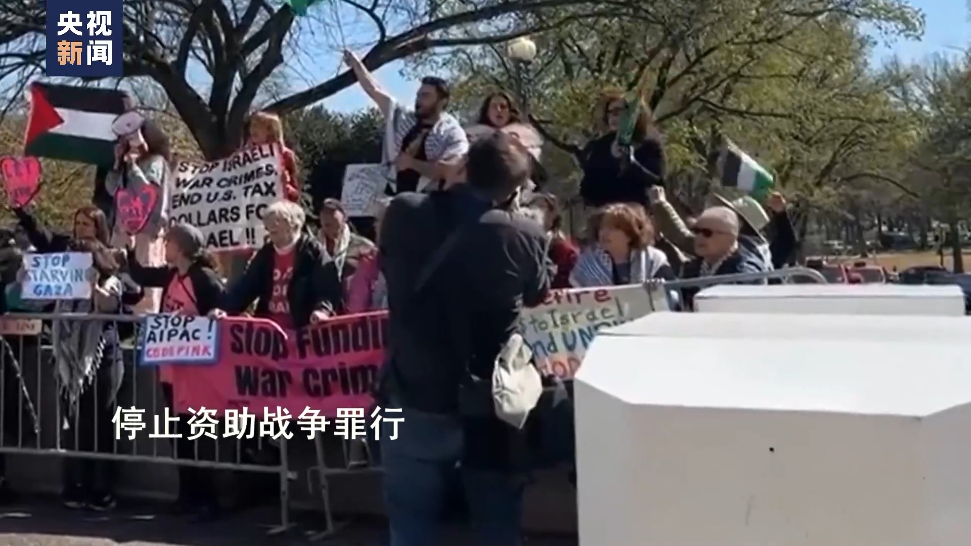 当天晚些时候,加兰特抵达美国国务院,与美国国务卿布林肯会面。而在美国国务院外,不少人在举行抗议,要求停火。