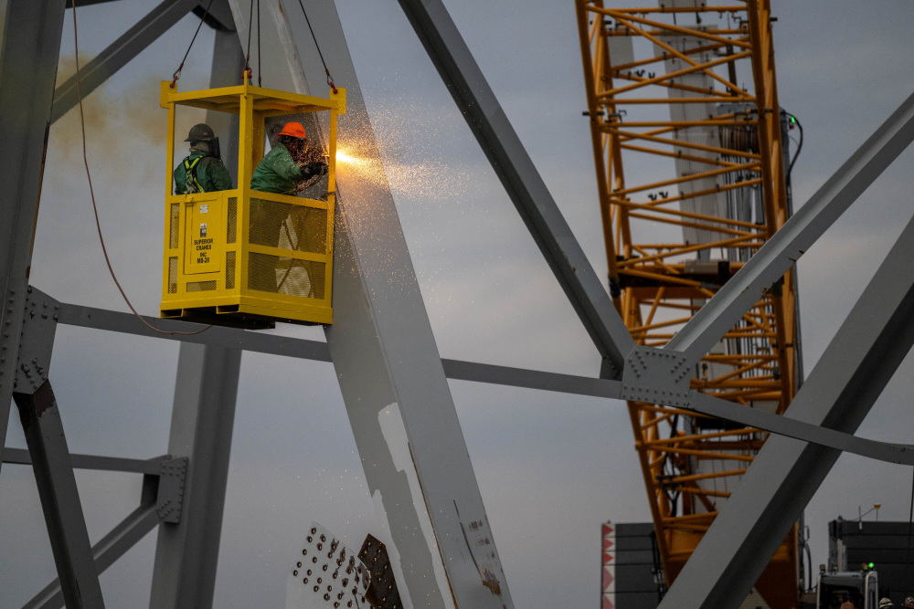 3月30日,工人在美国马里兰州巴尔的摩市的塌桥事故现场作业。新华社/路透