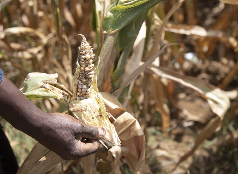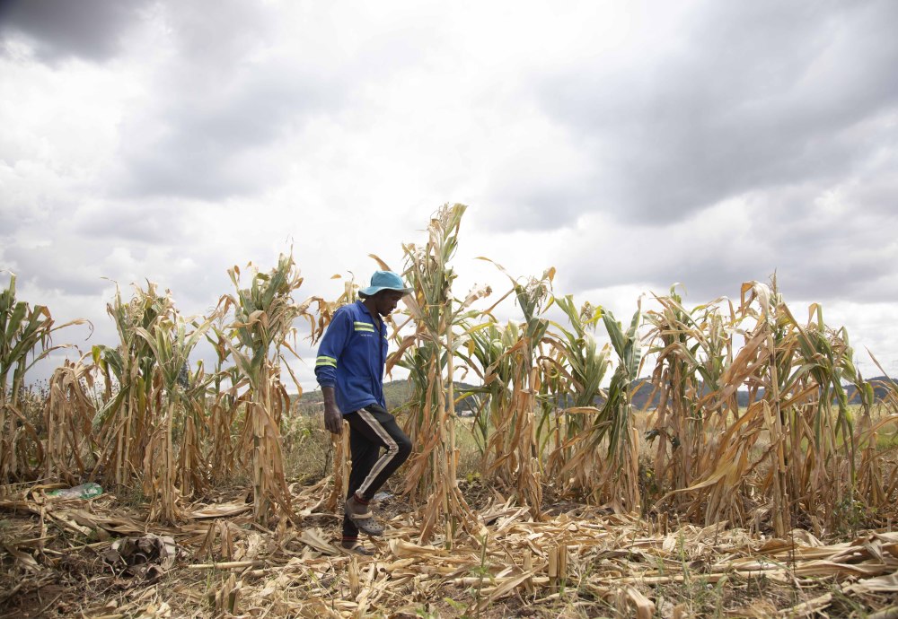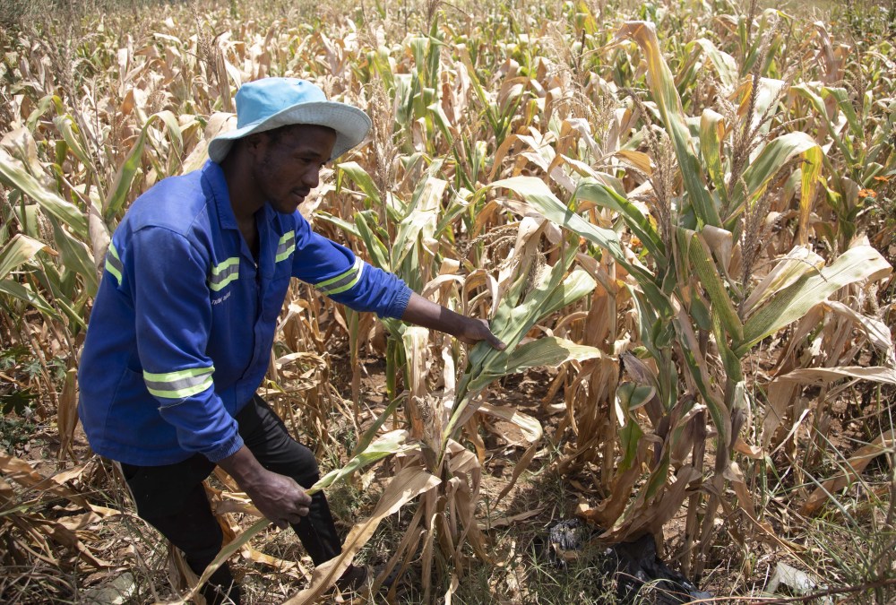 4月3日,农民在津巴布韦首都哈拉雷近郊的一块玉米地检查作物长势。新华社发(肖恩·朱萨 摄)