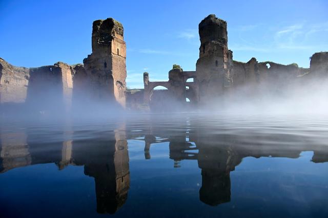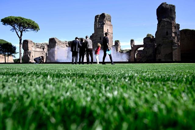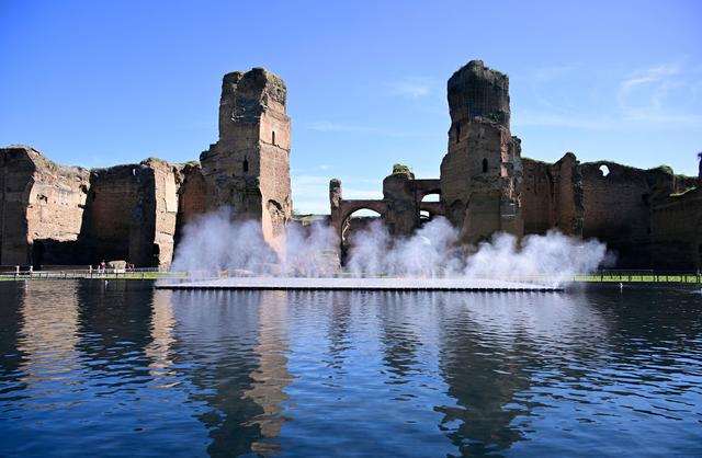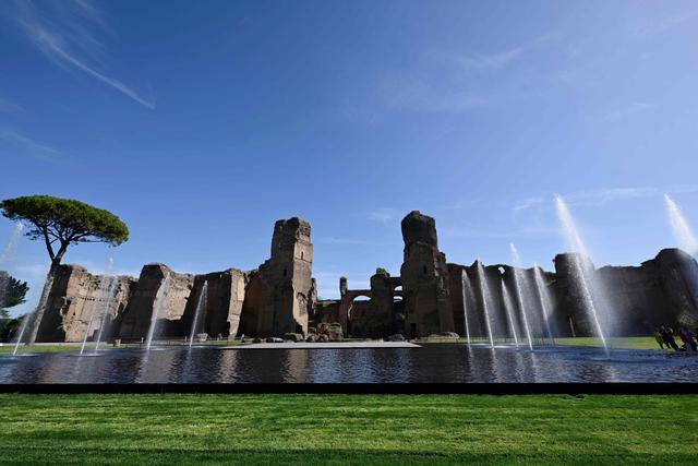 这是4月4日在意大利罗马卡拉卡拉浴场拍摄的新搭建的人工水景。新华社/法新