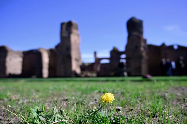 这是4月4日在意大利罗马卡拉卡拉浴场拍摄的花朵。新华社/法新