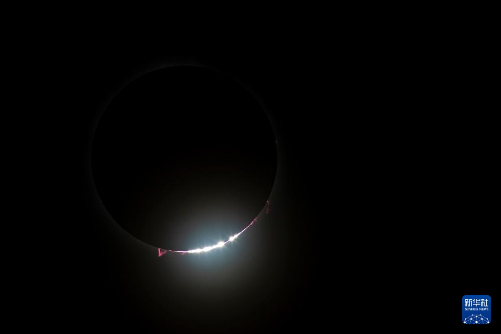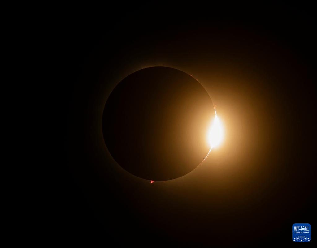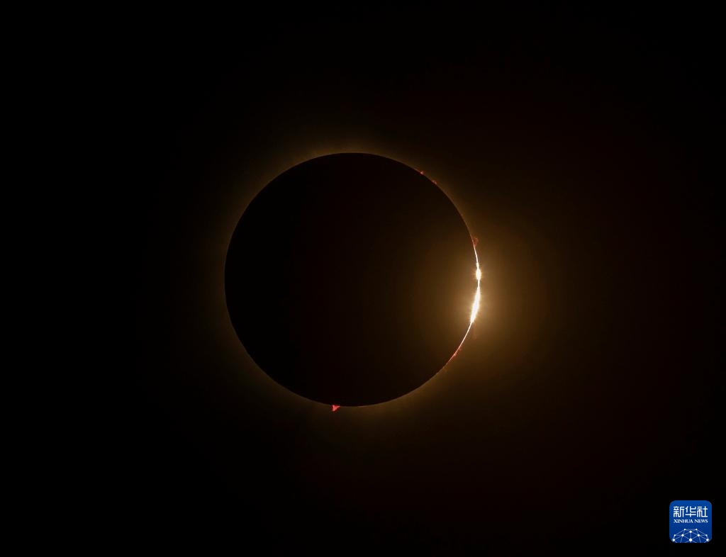 这是4月8日在美国得克萨斯州普莱诺拍摄的日全食景观。