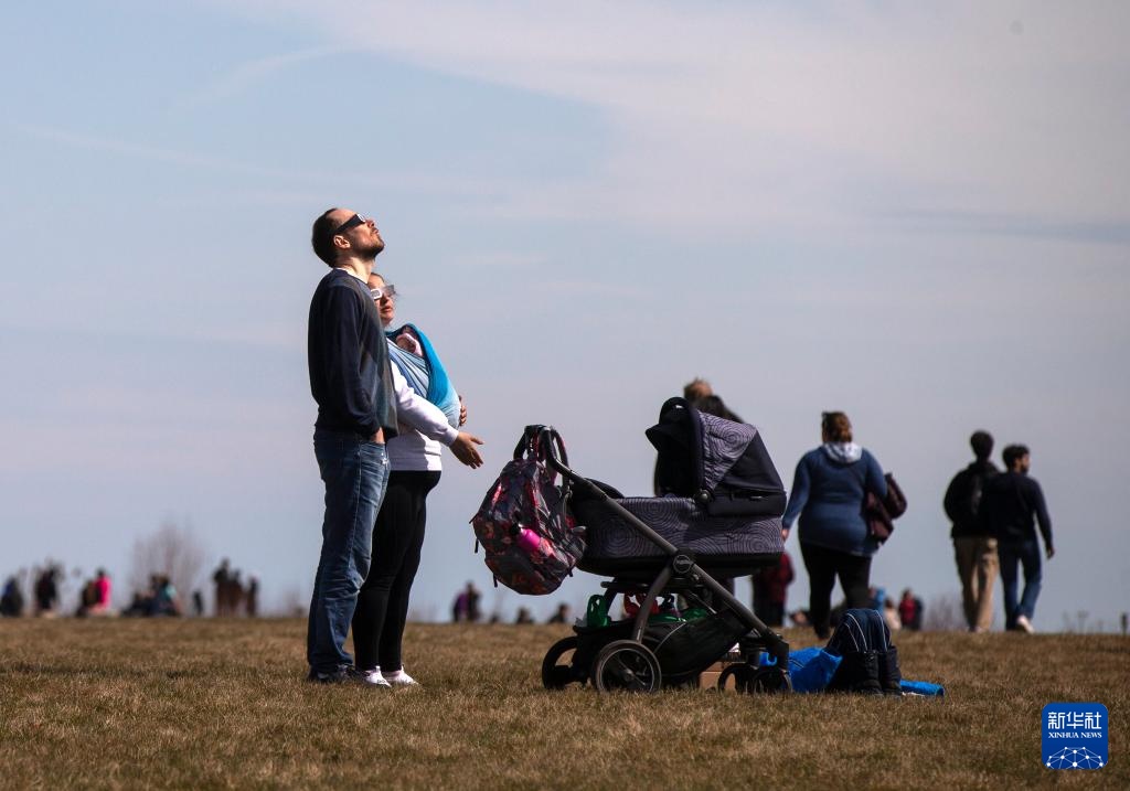 4月8日,人们在美国得克萨斯州达拉斯北郊观看日食。