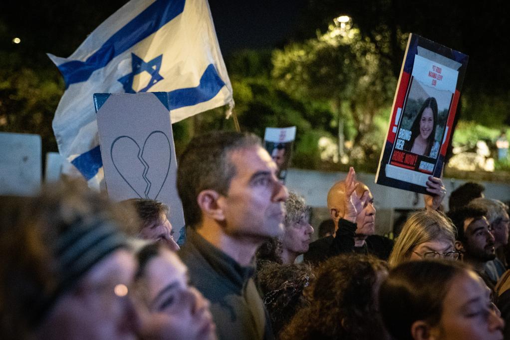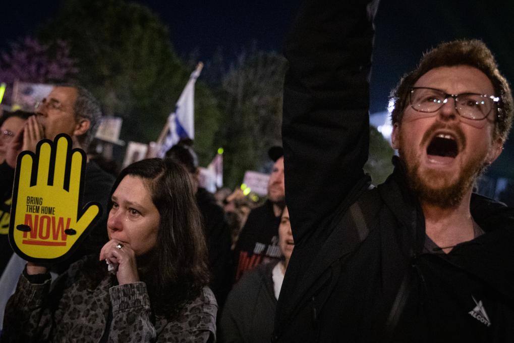 4月7日晚,大批民众在耶路撒冷举行集会,要求以色列政府尽快与巴勒斯坦伊斯兰抵抗运动(哈马斯)达成协议,让被扣押的以色列人尽快获释。新华社记者陈君清摄