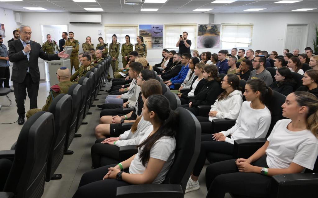 4月9日,以色列总理内塔尼亚胡在特拉维夫附近的一个军事基地讲话。新华社发(以色列政府新闻办公室供图)