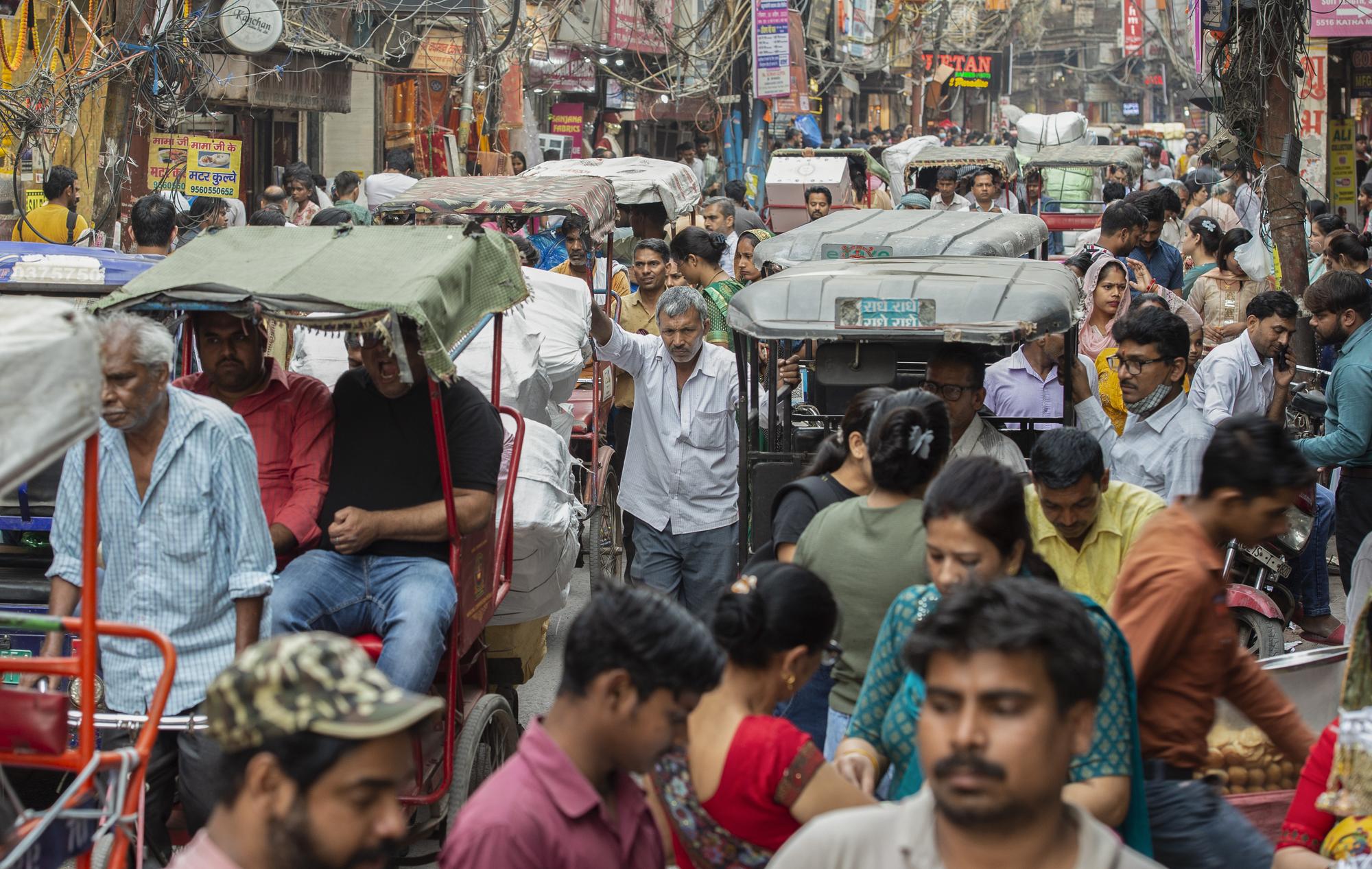 2023年4月26日,人们聚集在印度新德里的一处市场。新华社发(贾韦德·达尔摄)