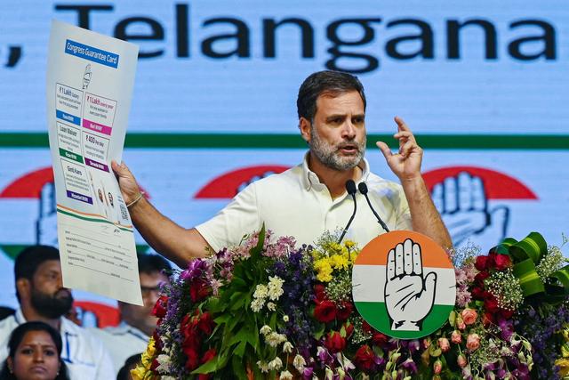 4月6日,在印度海得拉巴,印度国民大会党领导人拉胡尔·甘地在一个竞选活动上讲话。新华社/法新