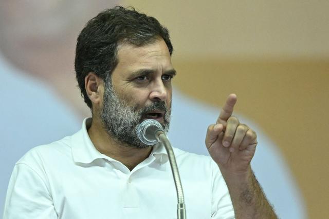 4月12日,在印度哥印拜陀,印度国民大会党领导人拉胡尔·甘地在一个竞选活动上讲话。新华社/法新