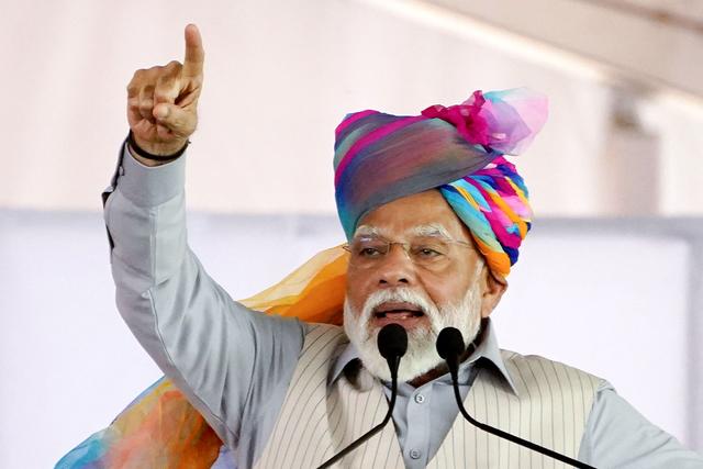 4月6日,在印度普什卡尔,印度总理纳伦德拉·莫迪在一个竞选活动上讲话。新华社/法新