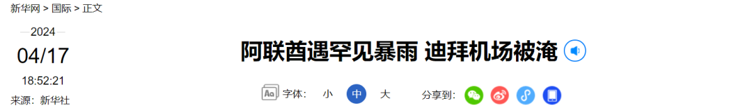 阿联酋部分地区发生暴雨极端天气,我驻迪拜总领馆:暂未收到中国公民伤亡报告