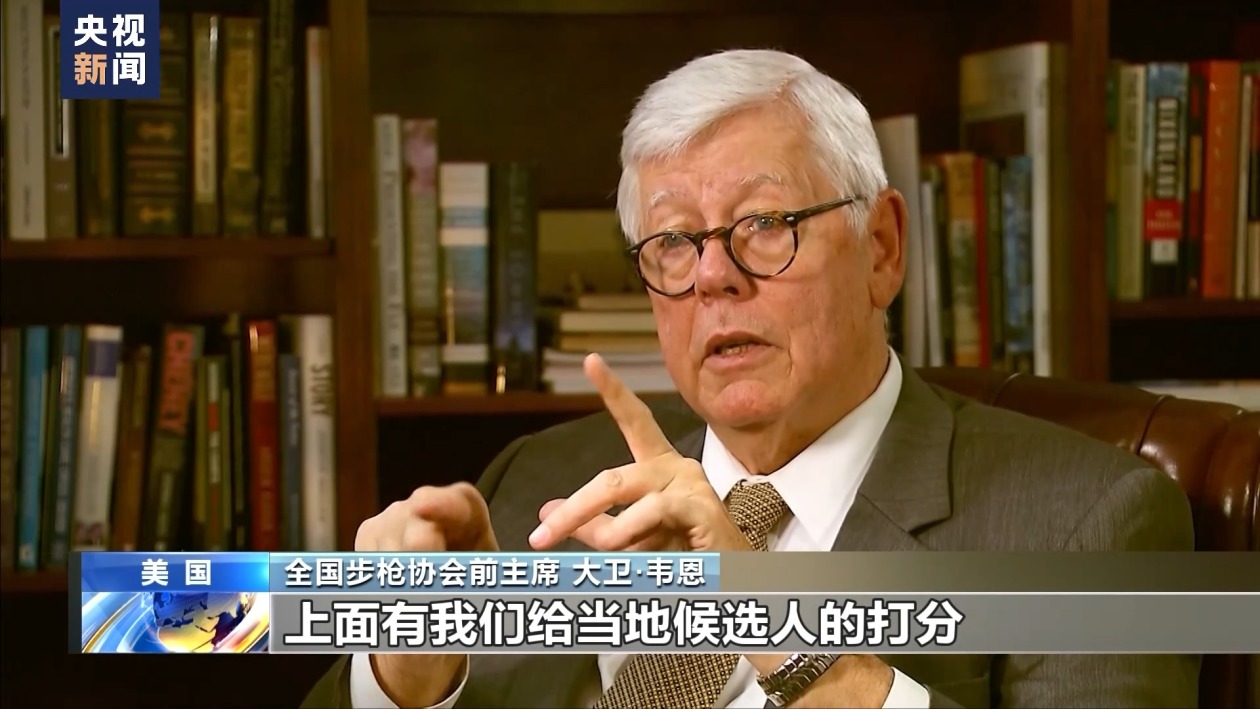 美国全国步枪协会前主席大卫·韦恩:我们会寄给协会会员一张橙色卡片,上面有我们给当地候选人的打分。如果卡片上写着某某候选人支持宪法第二修正案(拥枪权),那会员们就会支持他。如果卡片上说他不支持第二修正案(拥枪权),那么他们就不会选他。