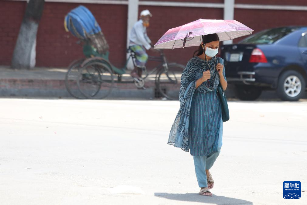 4月20日,在孟加拉国首都达卡,当地居民撑伞遮阳。