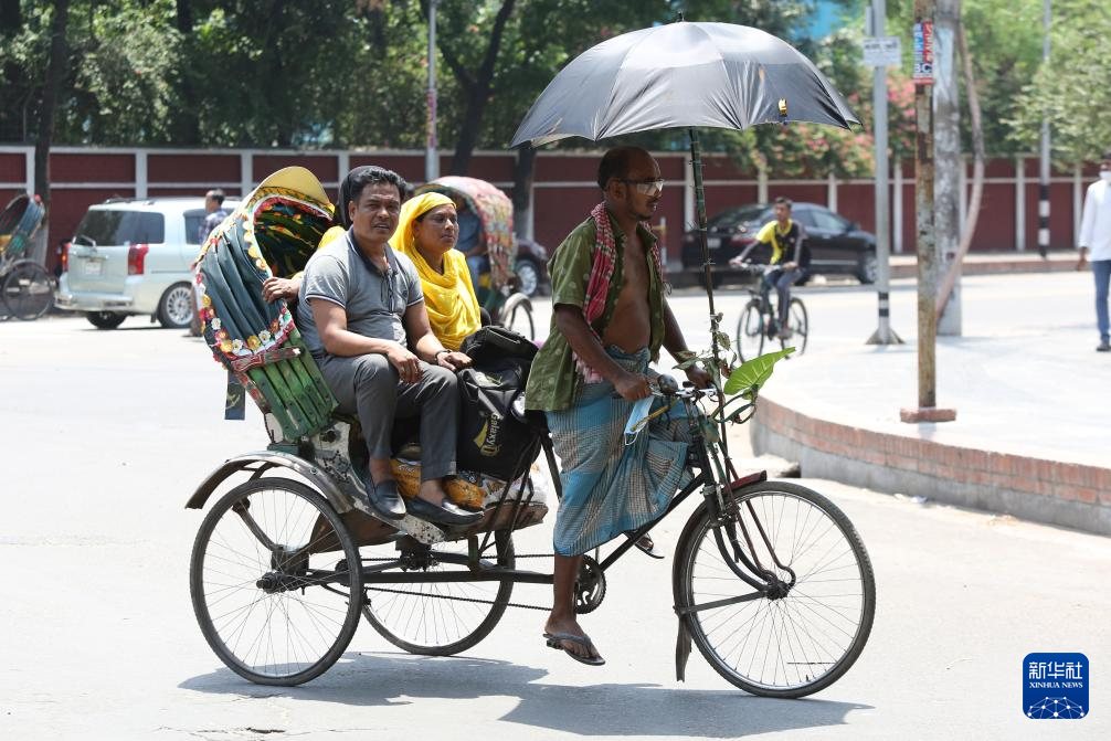 4月20日,人们在孟加拉国首都达卡乘坐人力车。