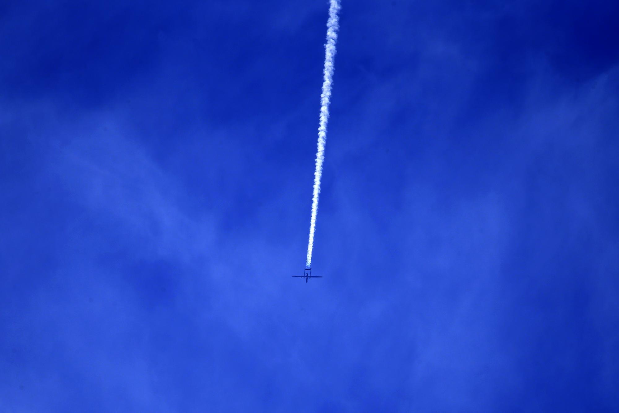 2月26日,在黎巴嫩马家勇,以色列无人机飞过黎以边境地区的天空。新华社发(阿里·哈希绍摄)