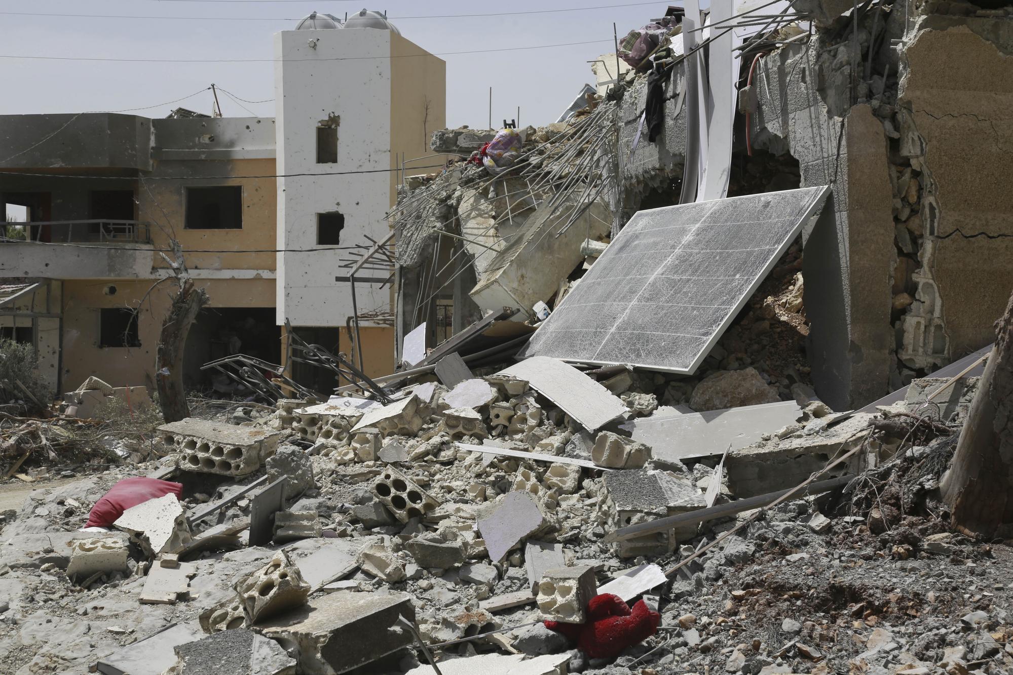 这是4月25日在黎巴嫩阿尔马沙卜拍摄的在以色列袭击中被摧毁的建筑物。新华社发(塔希尔·阿布·哈姆丹摄)