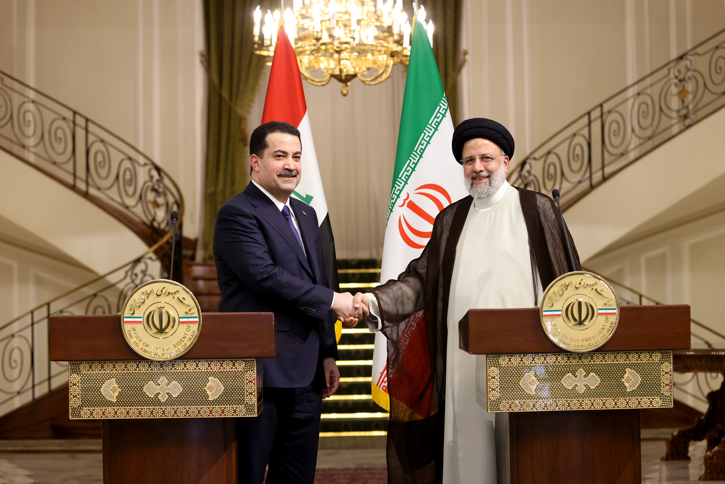 2022年11月29日,伊朗总统莱希(右)在首都德黑兰与到访的伊拉克总理苏达尼举行联合记者会。新华社发