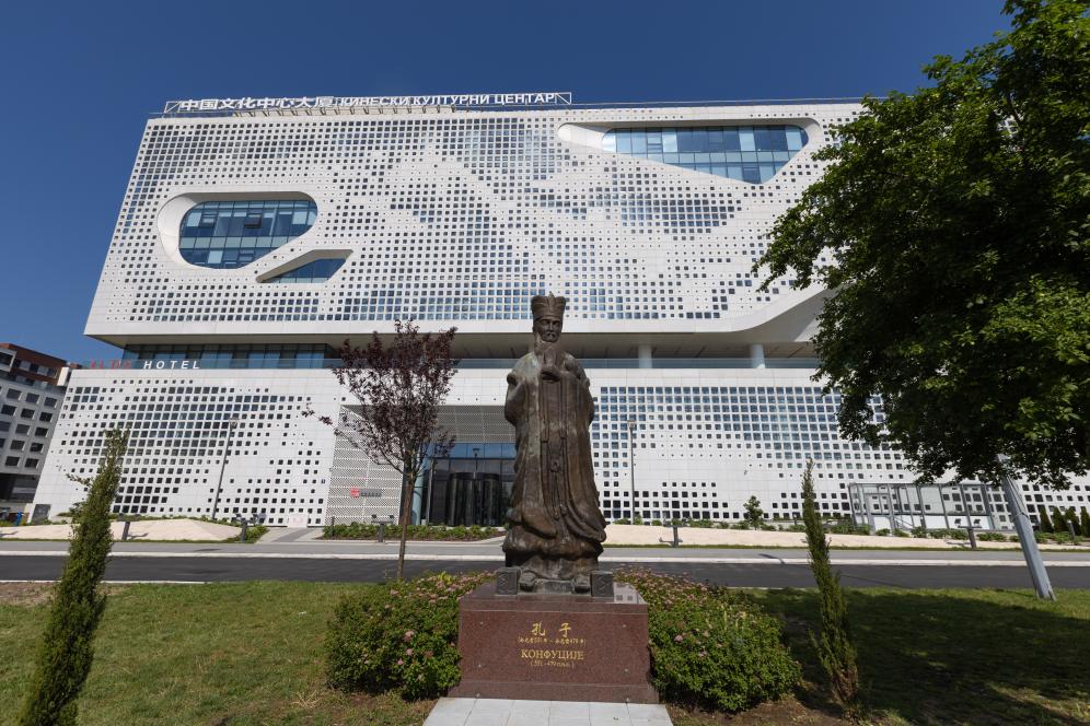 这是5月5日在塞尔维亚贝尔格莱德拍摄的中国文化中心。