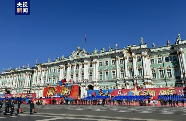 当地时间5月9日10时(北京时间15时),俄罗斯第二大城市圣彼得堡在艾尔米塔什冬宫广场举行盛大阅兵式,纪念卫国战争胜利79周年。